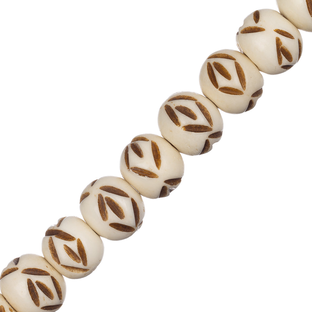Bone Carved Beads 11mm Antique Ivory 18/Strand