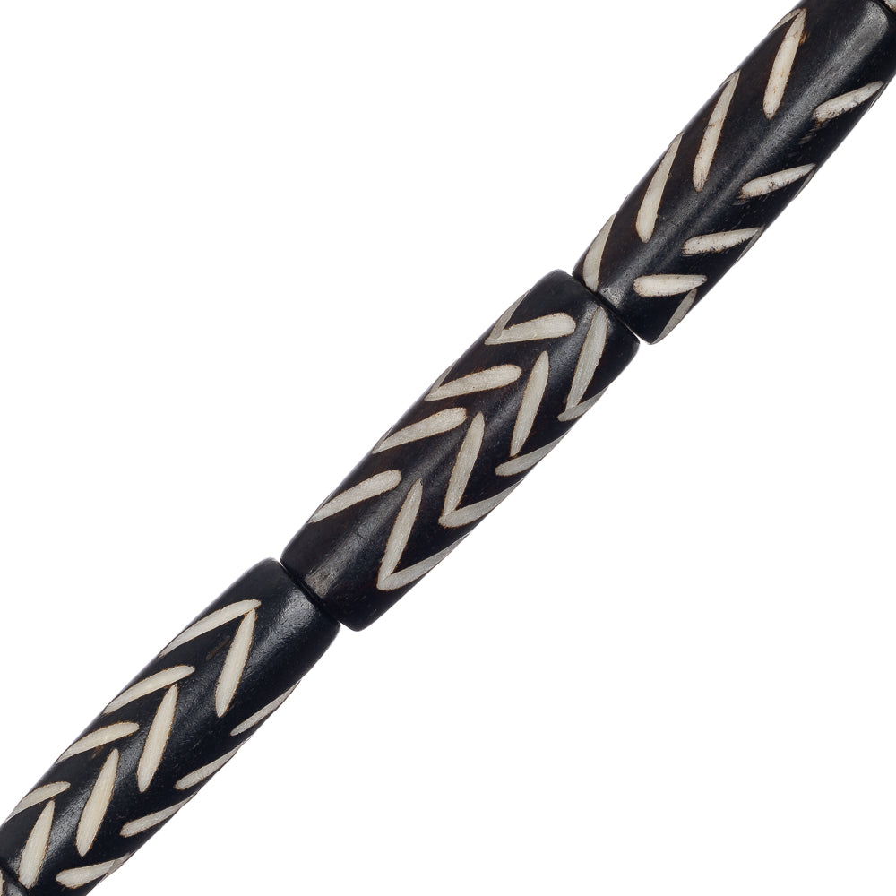 Bone Carved Tube Beads 1" Dark Brown 8/Strand