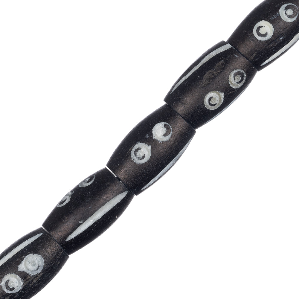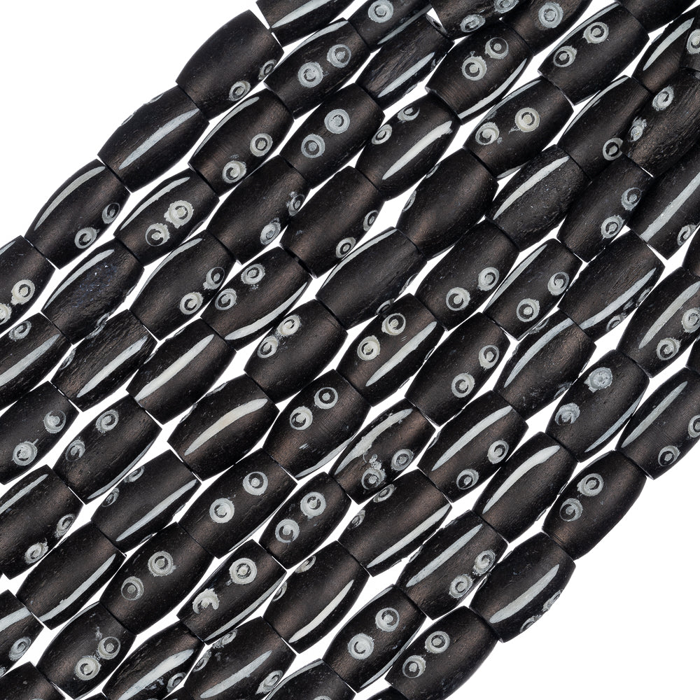 Bone Carved Tube Beads 0.5" Black & White 15/Strand