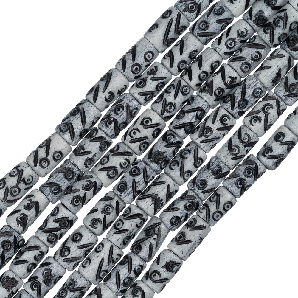 Bone Carved Tube Beads 0.5" White & Black 16/Strand