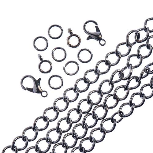 Description: Chain and matching findings. Each set includes one 36 inch chain, 6 jump rings, 2 bails, and 2 lobster clasps. Metal: Iron.