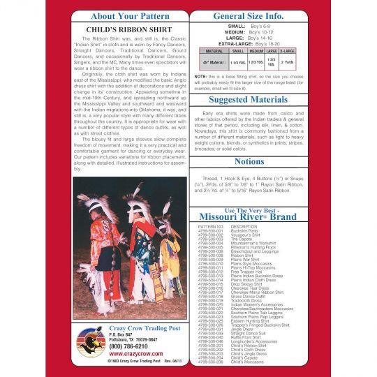 Description: Now available in children's sizes 4-14, for both boys and girls. Complete with detailed instructions on layout, cutting, sewing, and decoration, this style shirt is worn by most tribes throughout the country. modeled by J.T. Liles - Comanche-Creek-Seminole.