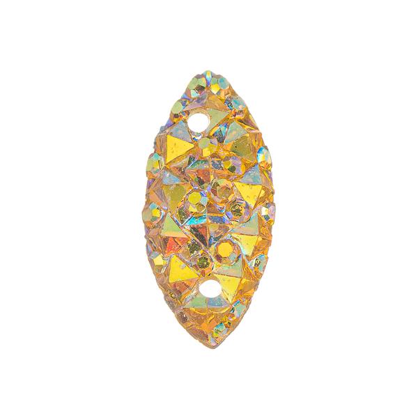 Description: Resin gummy spike navette stone. For application on fabrics, beading foundation, and craft project. Two hole sew-on stone.