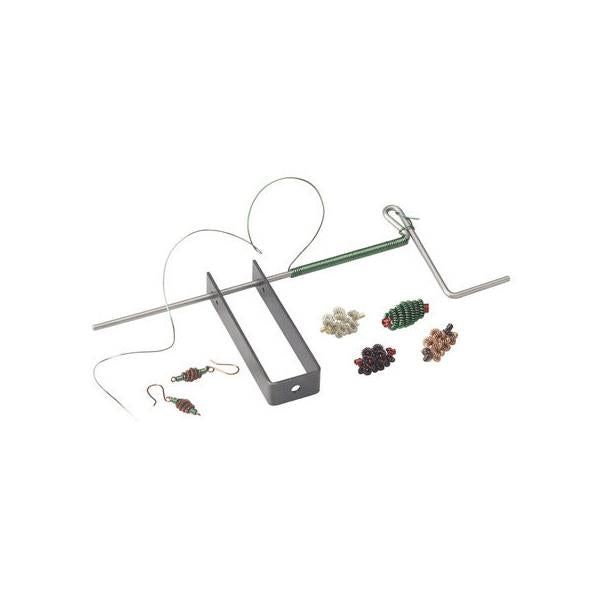 Description: It couldn't be simpler. Crank wire around the rod as shown and you've made a coil spring. Pull the spring off and insert a core wire. Now coil this spring around the larger rod in your kit to form a cylinder bead. Then try shaping it into a bi-cone or sphere. Imagine the possibilities. Tool includes two cranking rods {.063inch (1.6mm) and .135-Inch (3.4mm) diameter}, a bracket frame with screw and instructions. The Coiling Gizmo is suitable for use with all gauges of Artistic Wire to make beaded jewelry and other designs. Wire not included.
