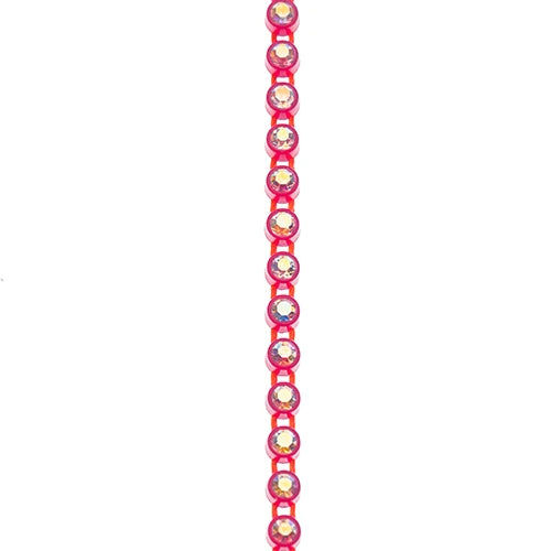 Plastic Rhinestone Banding 2.4mm Hot Pink/Crystal AB 10yd/pk