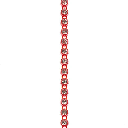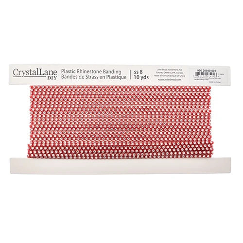 Plastic Rhinestone Banding 2.4mm Red/Crystal 10yd/pk