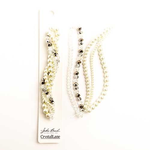 Crystal Lane DIY twisted bead strands feature a beautiful mix of shimmering glass beads, pre-strung in a twisted, textured design. Perfect for making bracelets, necklaces, and earrings, these ready-to-use strands add instant sparkle and dimension to your jewellery projects. Great for beginners and experienced crafters alike, they offer an easy way to create elegant, eye-catching pieces. Each package includes 5 x 6 inch strands. Each card features three glass pearls (8mm, 6mm, 4mm) and two unique glass bead strands.