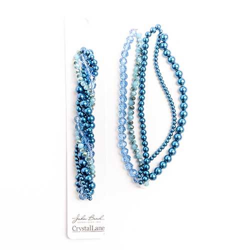 Crystal Lane DIY twisted bead strands feature a beautiful mix of shimmering glass beads, pre-strung in a twisted, textured design. Perfect for making bracelets, necklaces, and earrings, these ready-to-use strands add instant sparkle and dimension to your jewellery projects. Great for beginners and experienced crafters alike, they offer an easy way to create elegant, eye-catching pieces. Each package includes 5 x 6 inch strands. Each card features three glass pearls (8mm, 6mm, 4mm) and two unique glass bead strands.