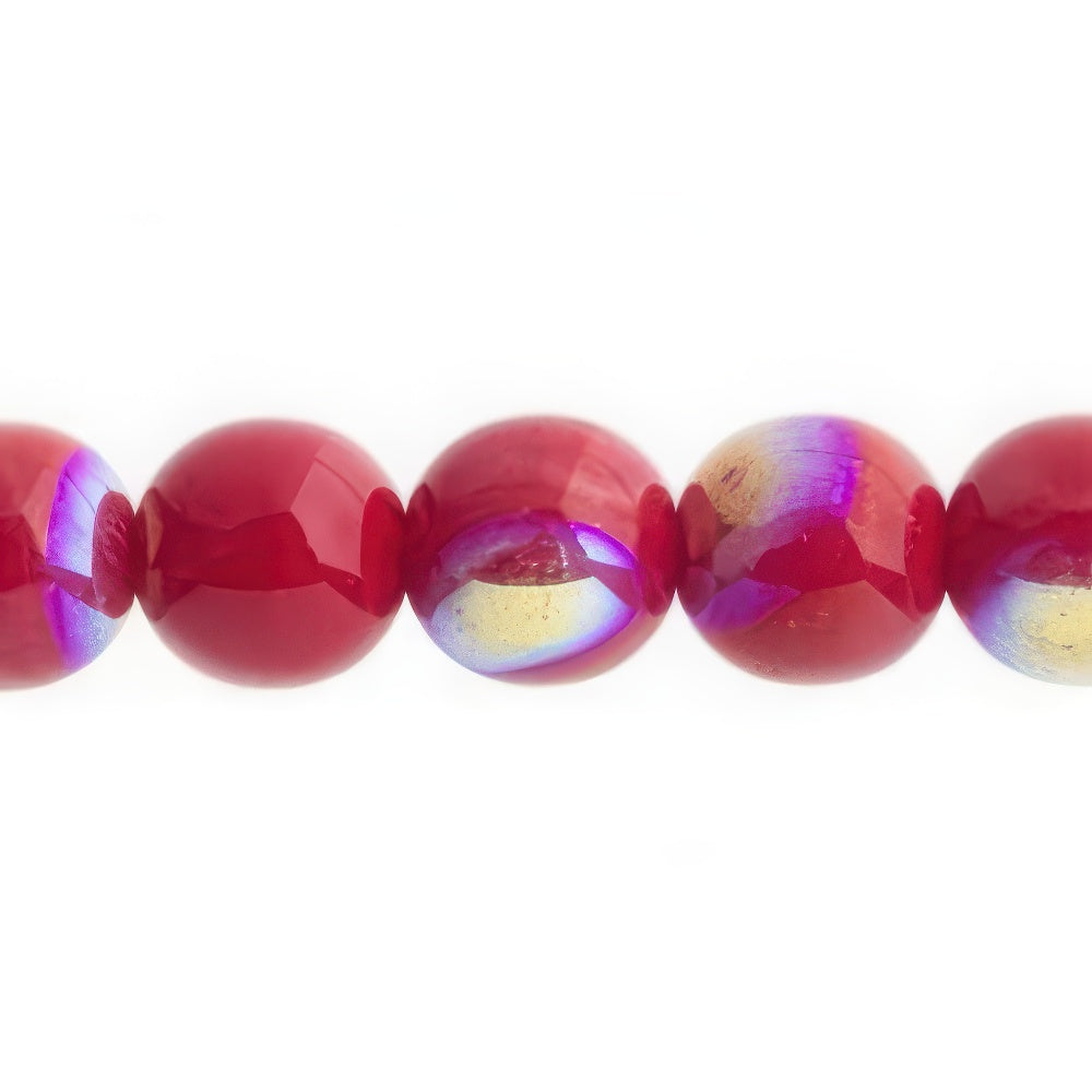 Czech Round Druk Beads 10mm Opaque Dark Red AB 18/strand