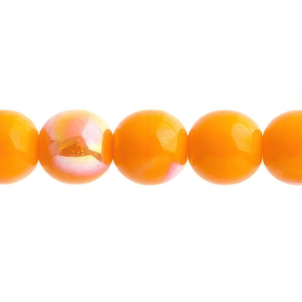 Czech Round Druk Beads 10mm Opaque Orange AB 18/strand