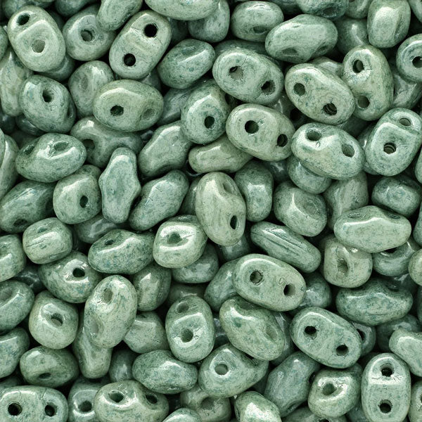 *Czech Miniduo Beads Chalk Green Luster 8g