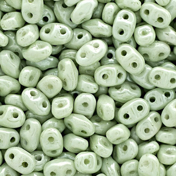 *Czech Miniduo Beads Chalk Light Green Luster 8g
