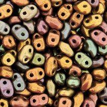 MiniDuo beads are high-quality, Czech-made glass beads known for their compact size and precision shape, measuring approximately 4 x 2 mm with two parallel holes about 0.8 mm in diameter. Designed as a smaller version of the popular SuperDuo, MiniDuos feature a sleek, oval silhouette with tapered ends, making them ideal for detailed bead weaving, intricate patterns, and delicate jewellery designs. Their consistent shape and size ensure smooth alignment and professional results, while a wide range of colours and finishes—including matte, metallic, and specialty coatings—offers endless creative possibilities for your projects.