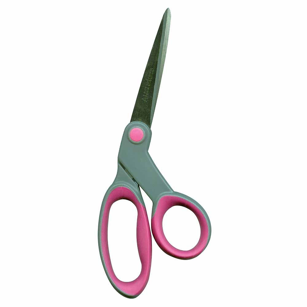 VIVA INFINITE Dressmakers' Shears – Right Handed – 8″ (20.3cm) are designed for precise fabric cutting, featuring a bent handle with a full-finger grip that keeps fabric flat on the table for improved accuracy. The unique design also helps protect cutting surfaces. Made with tempered stainless steel and fully ground blades, these shears deliver smooth, clean cuts. The ergonomic soft grip handle ensures comfort during extended use, making them ideal for sewing and tailoring projects.