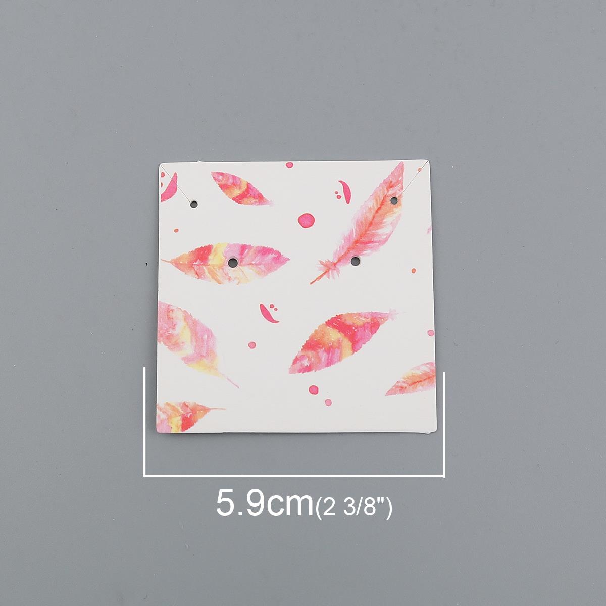 Description: White cardstock paper earring jewelry cards with 4 holes and 2 slits. Measure 59mm wide x 59mm long x 0.5mm thick.