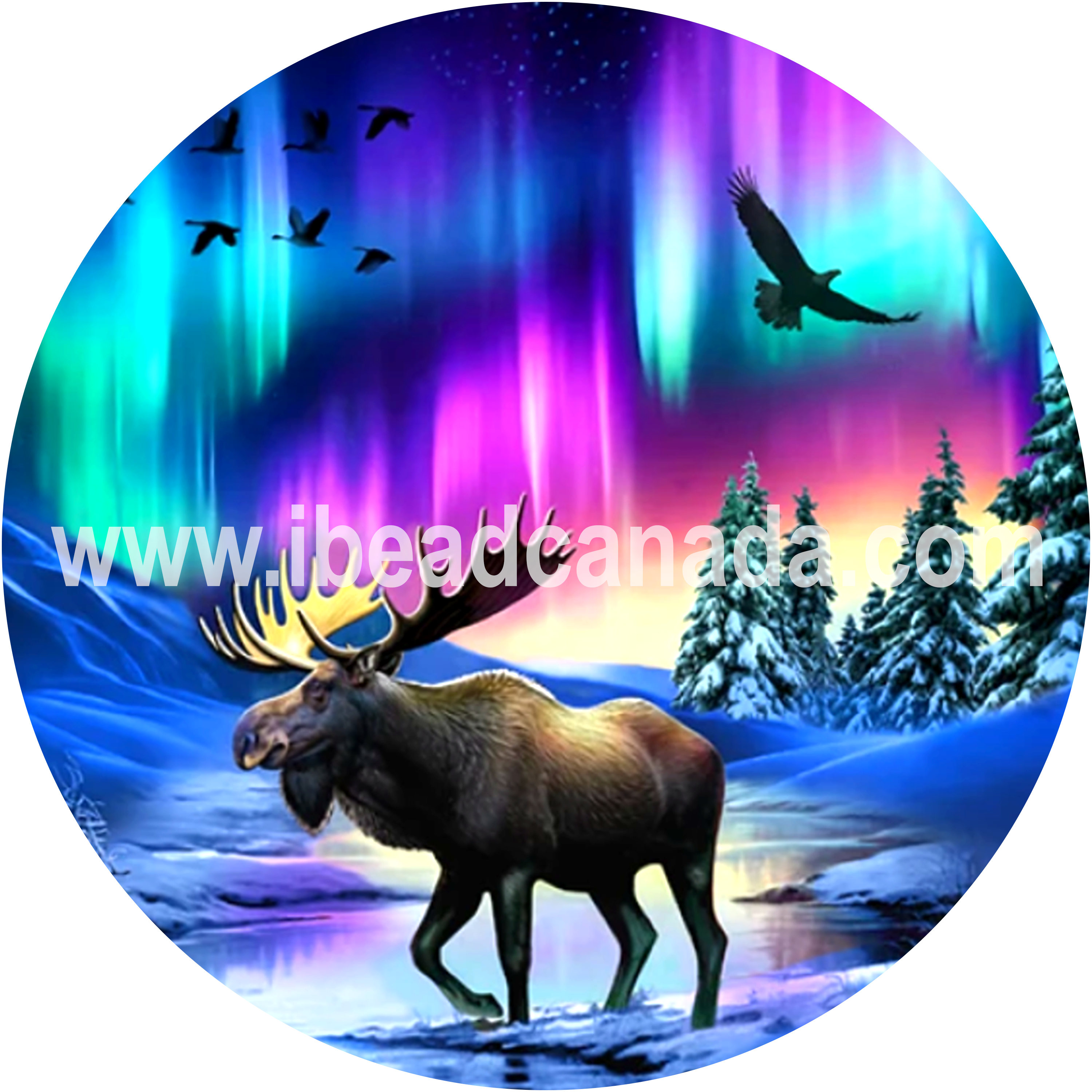 Capture the magic of the North with this stunning resin epoxy sticker featuring a majestic moose beneath the Northern Lights. The glossy, durable finish makes it perfect for jewellery, keychains, tumblers, scrapbooks, and custom décor pieces. Vivid colours of purples, blues, and greens bring the aurora borealis to life, while the detailed moose and winter forest scene add a touch of Canadian wilderness charm. Add this breathtaking design to your DIY collection and let your creations glow with natural beauty and northern spirit.