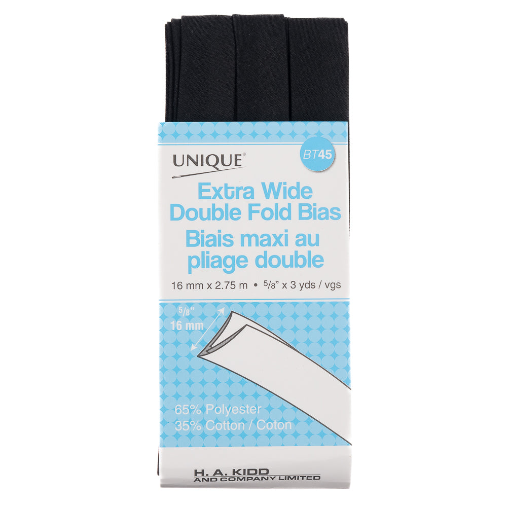 UNIQUE Extra Wide Double Fold Bias Tape measures 16mm wide x 3 yards long. Used to stabilize or finish raw edges with stretch seams for home décor items such as table runner, place mats etc. Can be used as decorative binding or casing. 65% polyester and 35% cotton. Machine wash 40°, tumble dry and iron at low heat, dry cleanable.