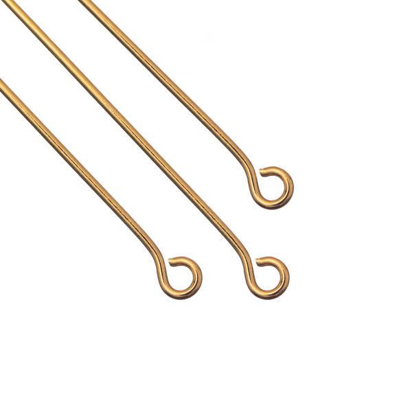 Description: Ideal for making a variety of jewelry items. Slide your favorite beads onto the pin, then bend the end into a loop using a round nose plier and connect to other pins, earring hooks, pendants & charms. Measures 1 inch x 0.7mm (22 gauge). Plated Brass. Nickel free, Lead free, and Cadmium free.