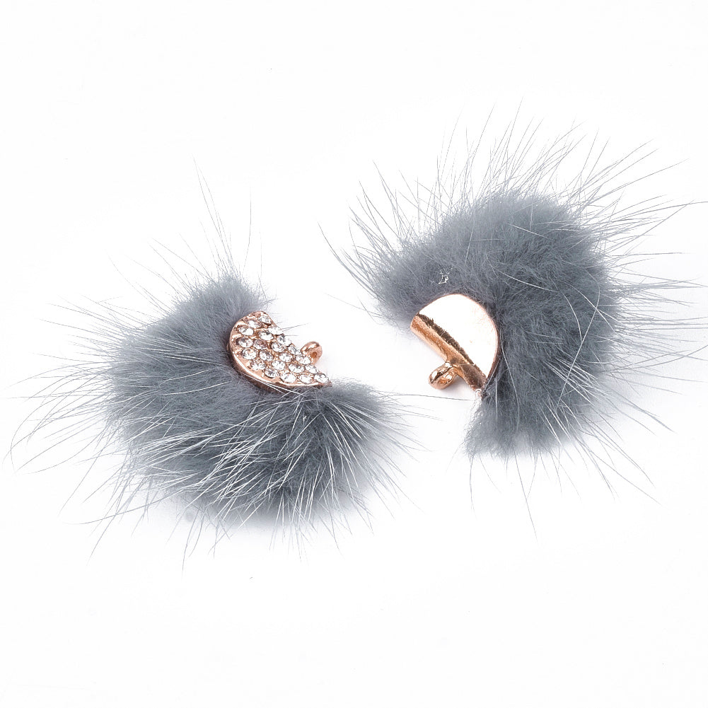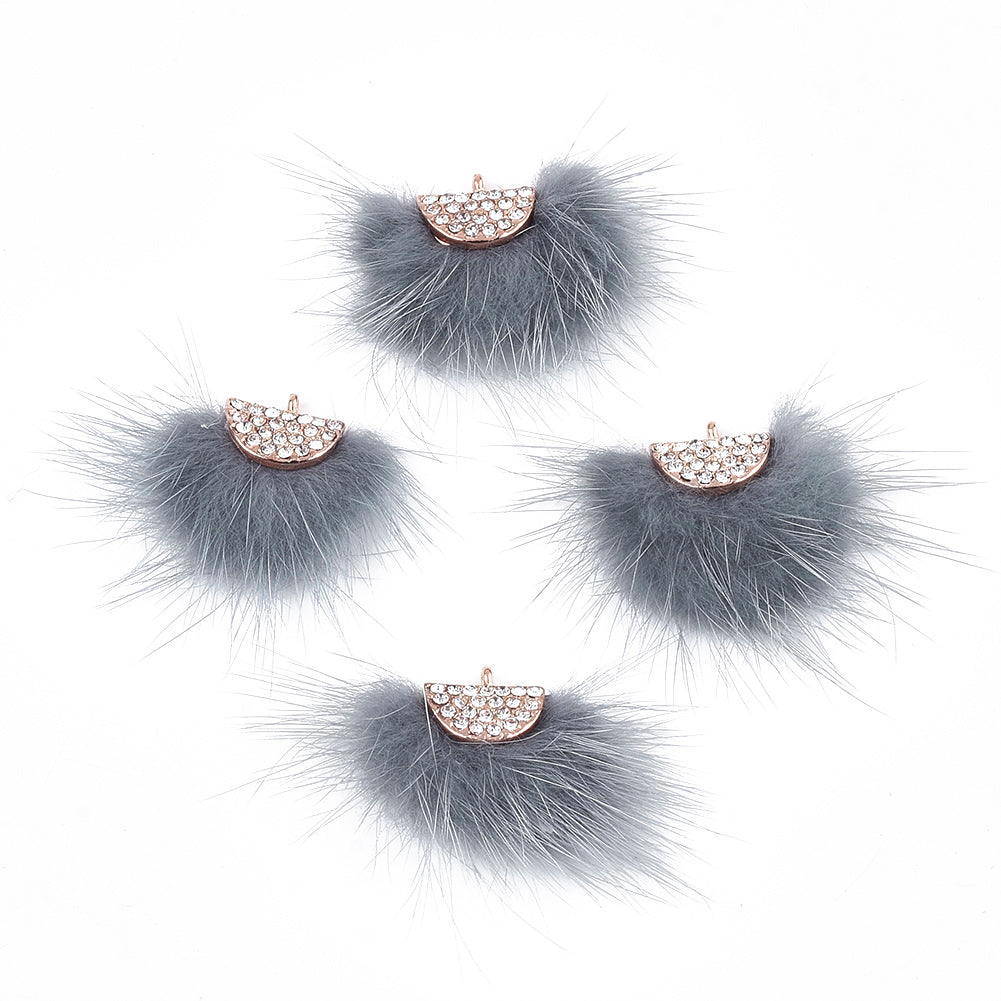 Description: Decorative fan shaped faux mink fur tassel with gold alloy rhinestone bail. Size: about 24~28mm long, 29~34mm wide, 8mm thick, hole: 1.5mm.