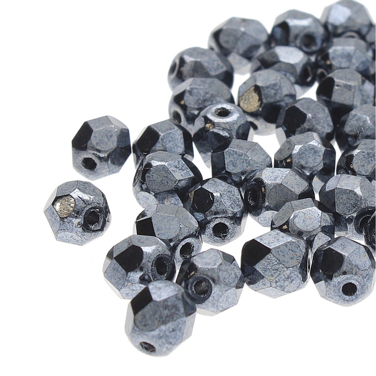 Fire Polished 4mm Round Jet Hematite 40/Strand
