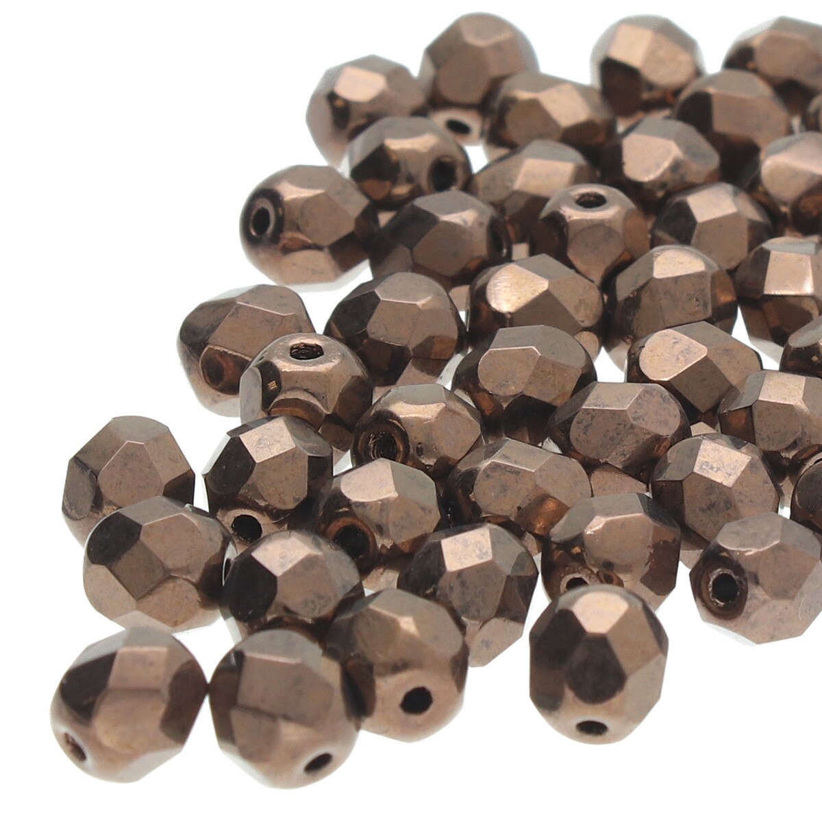 Fire Polished 6mm Round Jet Bronze 25/Strand