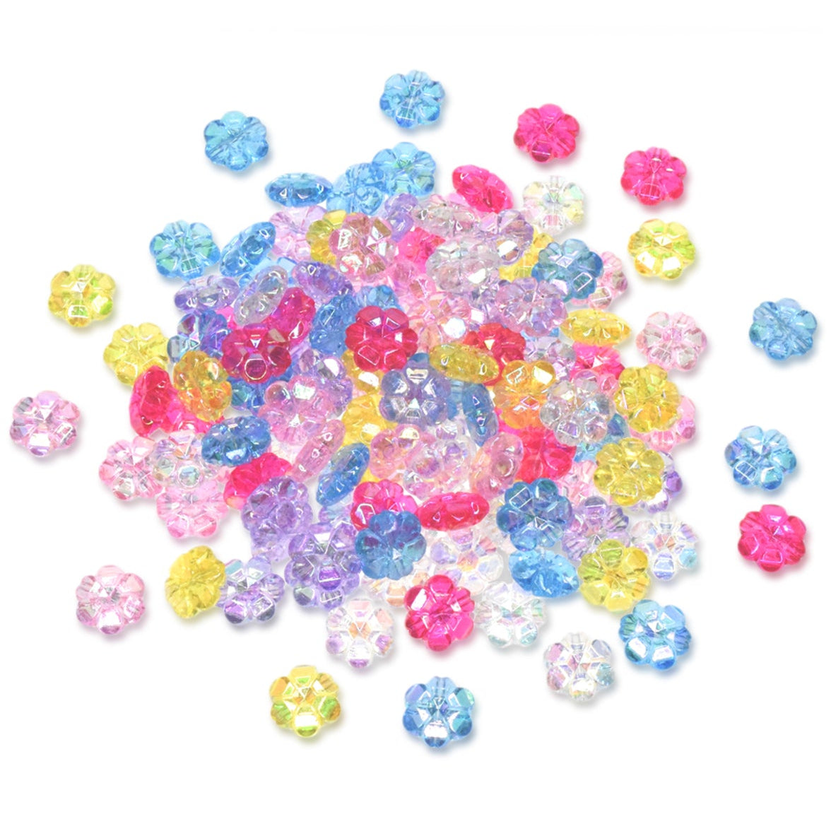 Add a cheerful touch to your crafts with these Acrylic Flower Beads in assorted pastel colours. Shaped like six-petal blossoms with a faceted finish that catches the light, these lightweight beads are perfect for kids' crafts, decorations, keychains, and fun DIY projects. The bright, transparent colours make them easy to mix and match, while the centre hole allows for simple stringing on cord, yarn, or pipe cleaners. Great for classrooms, parties, or creative afternoons at home, these flower beads bring a playful floral flair to any project.