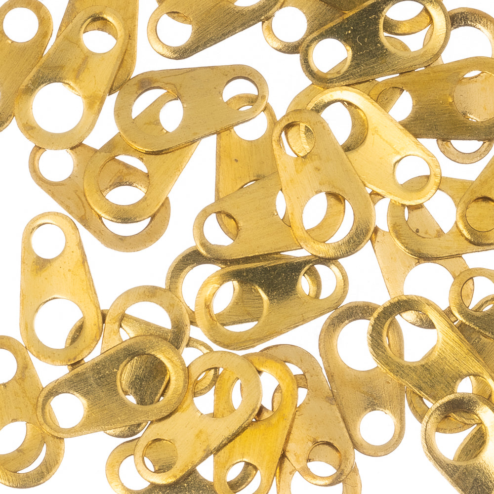 Description: Chain tabs are great for use with spring rings or lobster clasps to finish the ends of necklaces and bracelets. Hook your clasp into a chain tab instead of a jump ring for a clean professional finish. Plated brass. Measures 3mm wide, 6mm long, hole: 1mm
