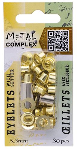 Description: Eyelets with 5.3mm hole. 10mm outside diameter. Includes a punch and setter.