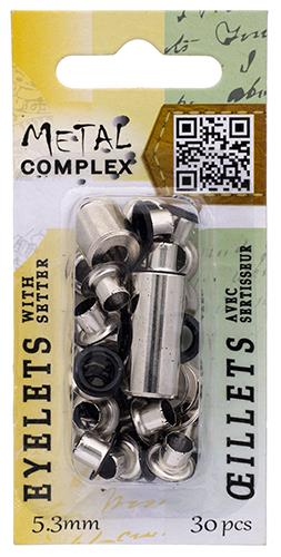 Description: Eyelets with 5.3mm hole. 10mm outside diameter. Includes a punch and setter.