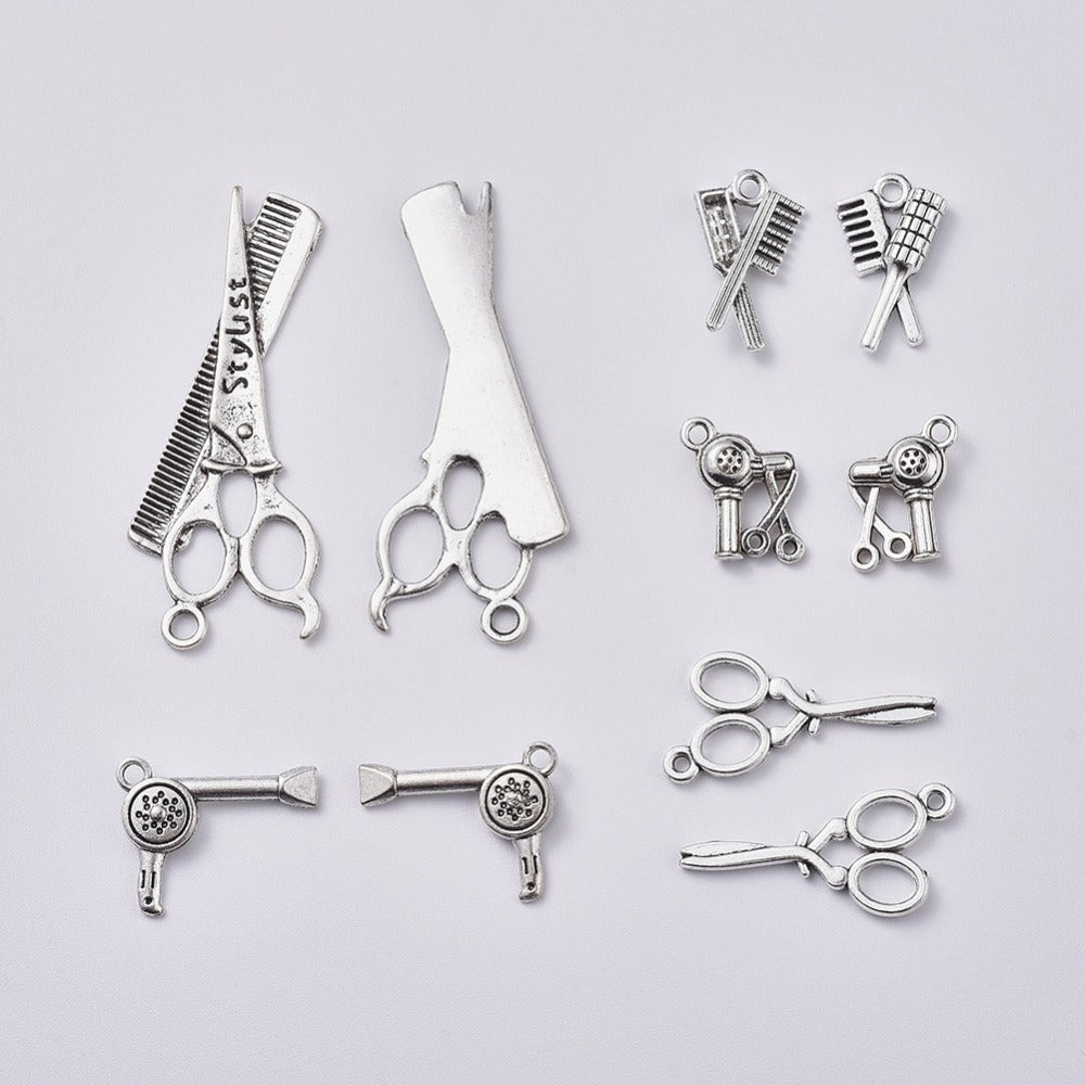 Show off creativity and style with our Hair Stylist Charm & Pendant Set, a collection inspired by salon essentials. Featuring combs, blow dryers, and scissors in assorted sizes, this set includes both small charms for bracelets or earrings and larger pendants for necklaces or keychains. A fun and thoughtful choice, these pieces make perfect gifts for stylists or unique accents for jewellery celebrating the art of hair design.