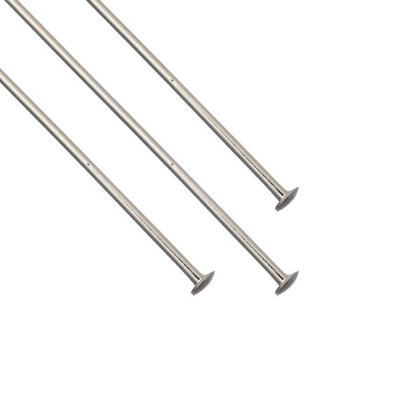 Description: A jewelry-maker's staple, Headpins allow you to make earrings, pendants, links and drop embellishments. Measures 3 inch x 0.7mm (22 gauge). Plated Brass. Nickel free, Lead free, and Cadmium free.