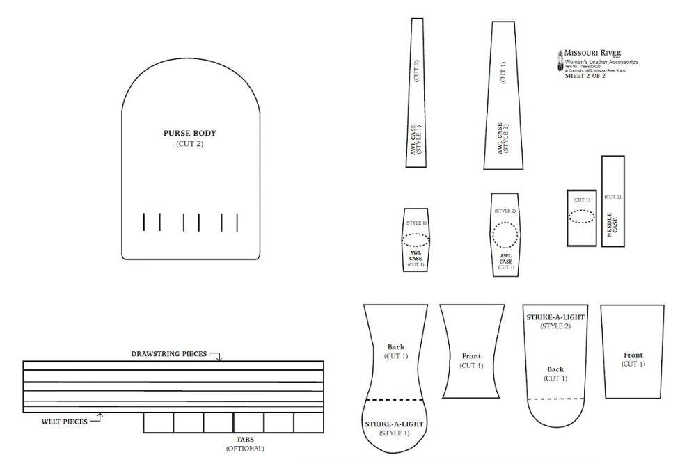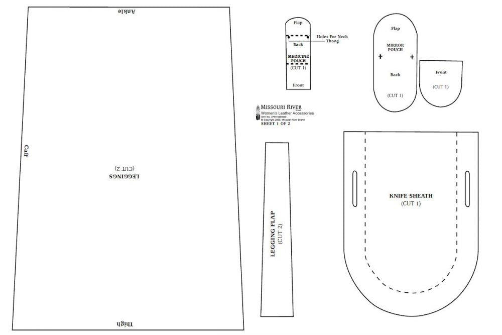 Description: Consists of several patterns with illustrated instructions. Northern and Southern belt sets (strike-a-light, awl and knife cases), mirror bag, large knife sheath, Northern Plains leggings, medicine pouch, and buckskin purse are all featured. modeled by Roxanne and Jessica Reddick - Comanche.