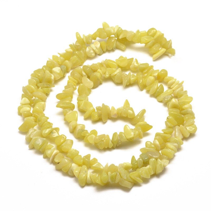 These chip beads glow in soft yellow to golden lemon tones, with natural variations that add depth and character to each piece. Lemon Jade is often associated with clarity and positivity, believed to encourage emotional balance, joy, and a fresh outlook. Their cheerful hues and organic shapes make them perfect for jewellery that feels light, vibrant, and full of uplifting energy. Slight variations in colour, size, and markings are to be expected, adding to their one-of-a-kind appeal.