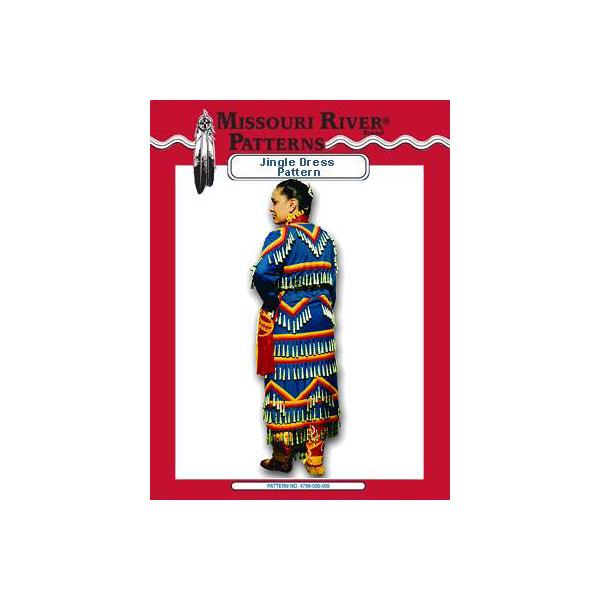 Description: This traditional Northern Plains dress style has evolved and spread throughout the U.S. Our pattern allows you to make the under-dress, cape & apron type jingle dress with options for jingle placement. Modeled by Erica Hart.