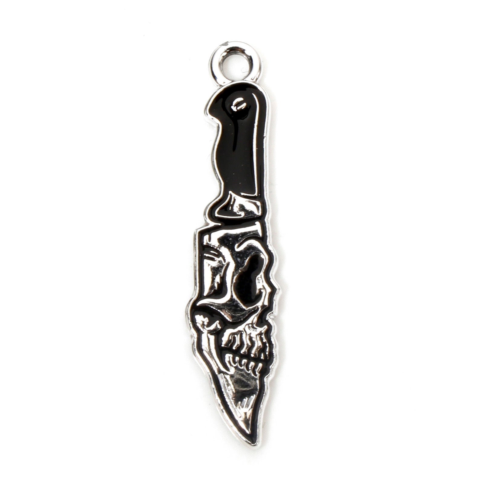 Knife with Skull Enamel Charm 31x7mm 5/pk