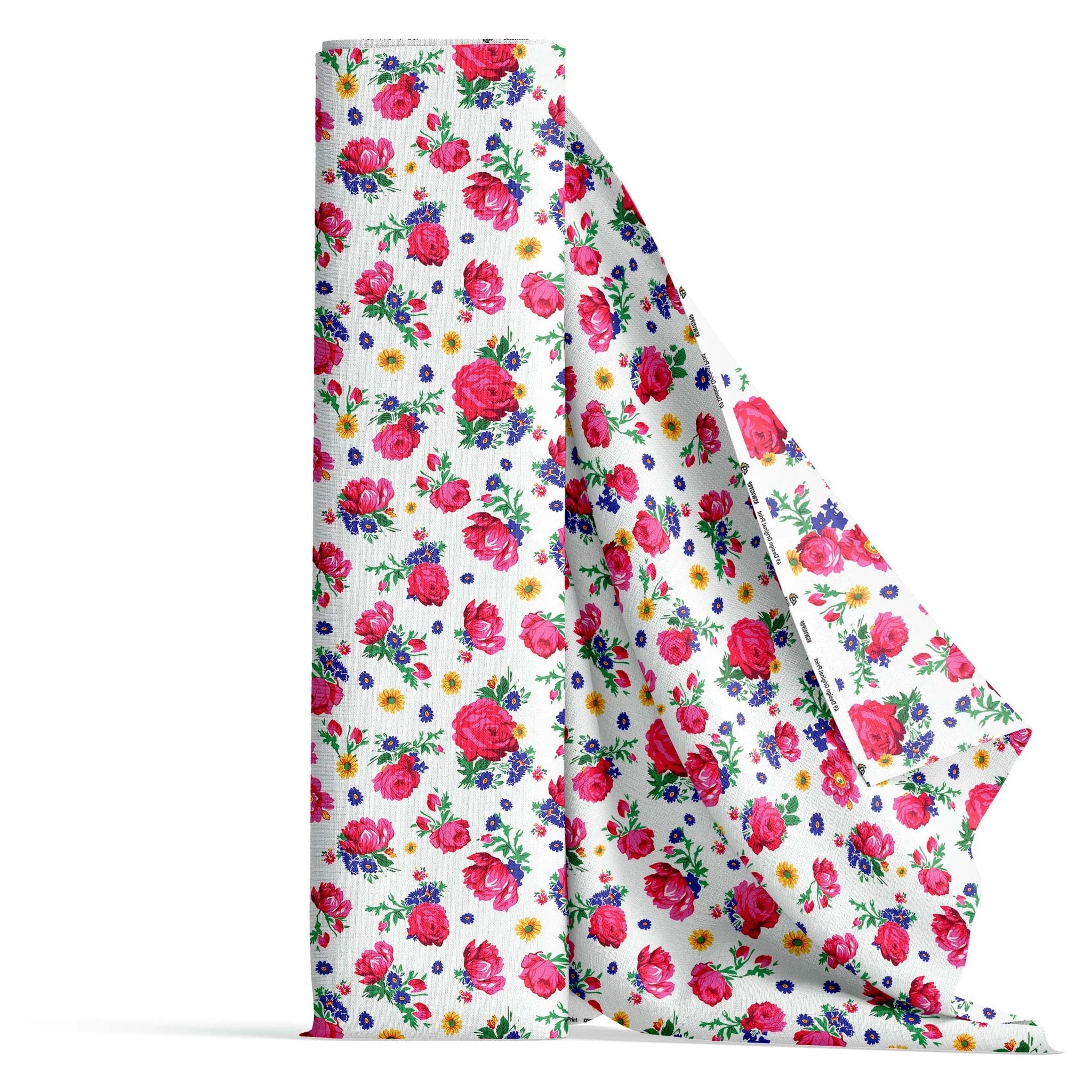 This cotton fabric features classic kokum floral bouquets with flowing leaves and wildflower accents, celebrating grandmothers, community, and cultural storytelling in a design that feels both joyful and timeless. Lightweight yet versatile, it is perfect for ribbon skirts, regalia accents, powwow accessories, and star quilts, while also lending itself beautifully to tote bags, table runners, and wall hangings. Sold by the half yard; multiple quantities are sold in one continuous cut. Pre-wash and dry before sewing to prevent shrinkage. Machine wash cold with like colours; tumble dry low; warm iron.