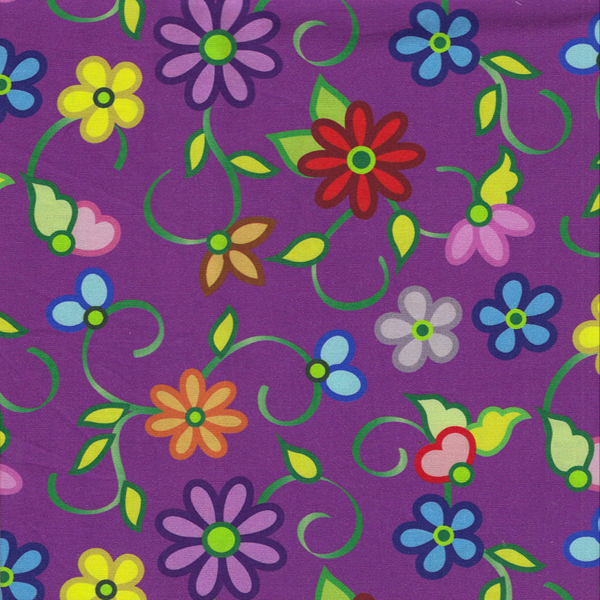 This cotton fabric features playful floral vines and blossoms in a beadwork-inspired style, celebrating growth, community, and cultural storytelling in a design that feels cheerful and meaningful. Lightweight yet versatile, it is perfect for ribbon skirts, regalia accents, powwow accessories, and star quilts, while also lending itself beautifully to tote bags, table runners, and wall hangings. Sold by the half yard; multiple quantities are sold in one continuous cut. Pre-wash and dry before sewing to prevent shrinkage. Machine wash cold with like colours; tumble dry low; warm iron.