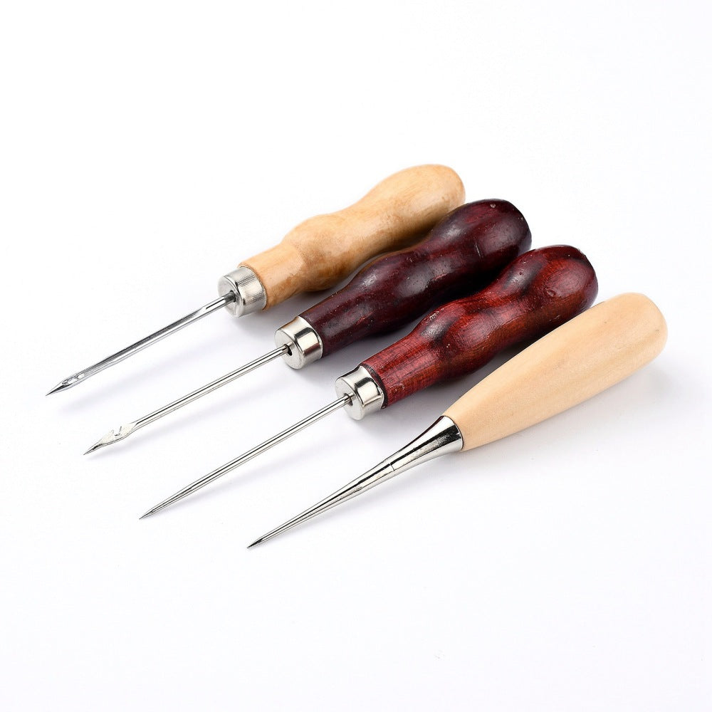 Tackle leather repairs and hand-stitching projects with confidence using this all-in-one Leather Working Tools Set—perfect for mending bags, belts, straps, wallets, upholstery, and more. Inside you’ll find waxed polyester cord in 3 colours, four handy awls (straight, hook, solid wood, and hollow), a beeswax block to condition thread, sewing scissors, two tracing/wheel “tooth” tools for marking stitch lines, a comfortable sewing thimble, and an assortment of specialty needles (including glover’s, carpet, sail, upholstery, sack, and curved mattress needles) neatly packed in a sturdy storage box. Whether you’re a beginner building your first kit or you need a reliable set for quick fixes, this kit gives you the essentials to stitch cleaner, stronger seams—grab one and get your leather projects back in action.