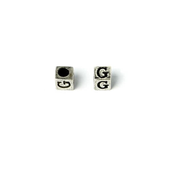 Metal Cube "G" Bead 7mm Antique Silver (Each)
