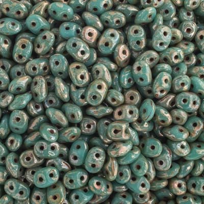 Matubo Czech Superduo Beads Turquoise Green Travertine Dark 22g