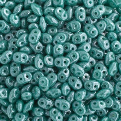 Matubo Czech Superduo Beads Turquoise Green White Luster 22g