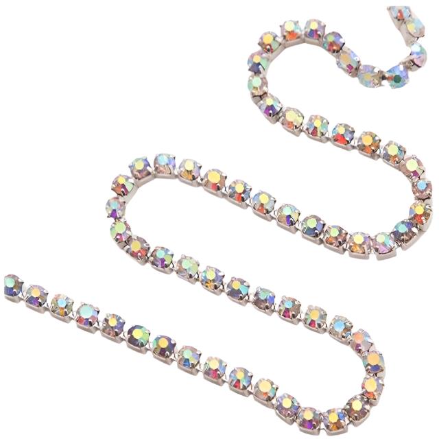 Metal Rhinestone Banding 2mm Silver AB by the Yard