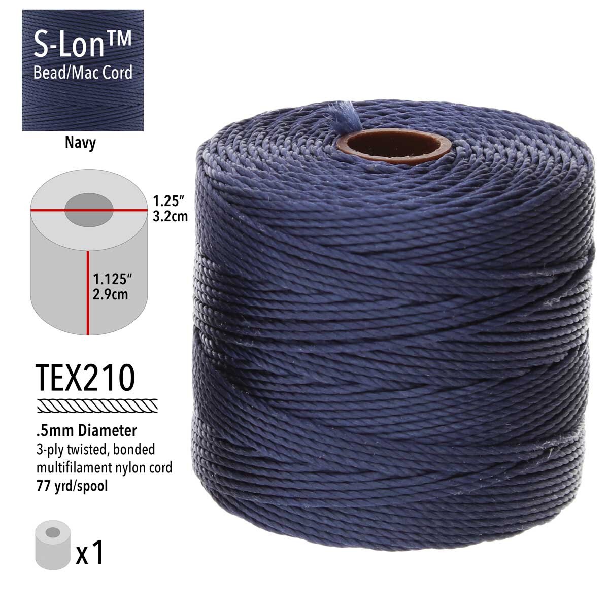 S-Lon Bead Cord TEX 210 is a thick, 3-ply bonded nylon cord with a diameter of 0.5 mm. It offers excellent strength and flexibility for stringing, knotting, and structural jewelry designs.