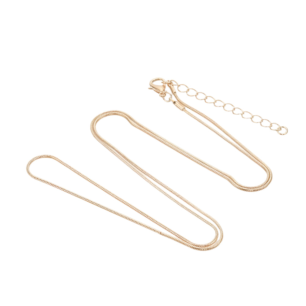 Description: Just add a pendant or charm to this ready made necklace. It's as easy as 1,2,3. Fine snake chain necklace has lobster clasp attached with fine jump rings and a chain extender. Measures 24.4 inch long x 1.2mm thick. Plated brass. Lead free, Cadmium free.