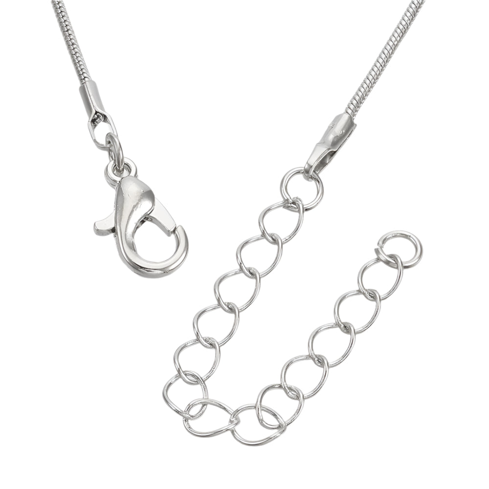 Description: Just add a pendant or charm to this ready made necklace. It's as easy as 1,2,3. Fine snake chain necklace has lobster clasp attached with fine jump rings and a chain extender. Measures 24.4 inch long x 1.2mm thick. Plated brass. Lead free, Cadmium free.