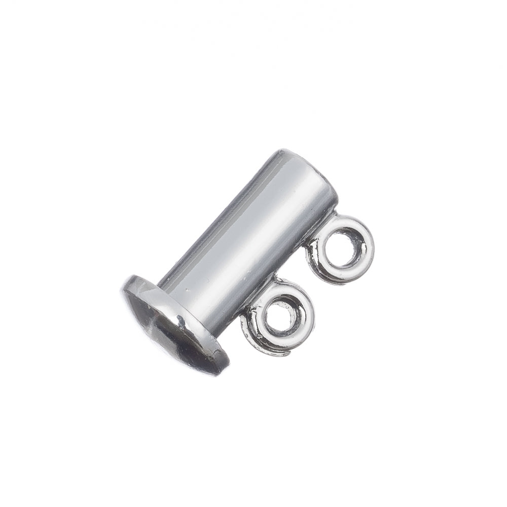 Description: This magnetic slide clasp features 2 small holes on either side, prefect for your multi strand designs. The magnets at the end of the clasp hold it closed and make it easy to open and close. Plated brass. Measures 15mm long x 10mm wide x 6mm thick, 2mm holes.