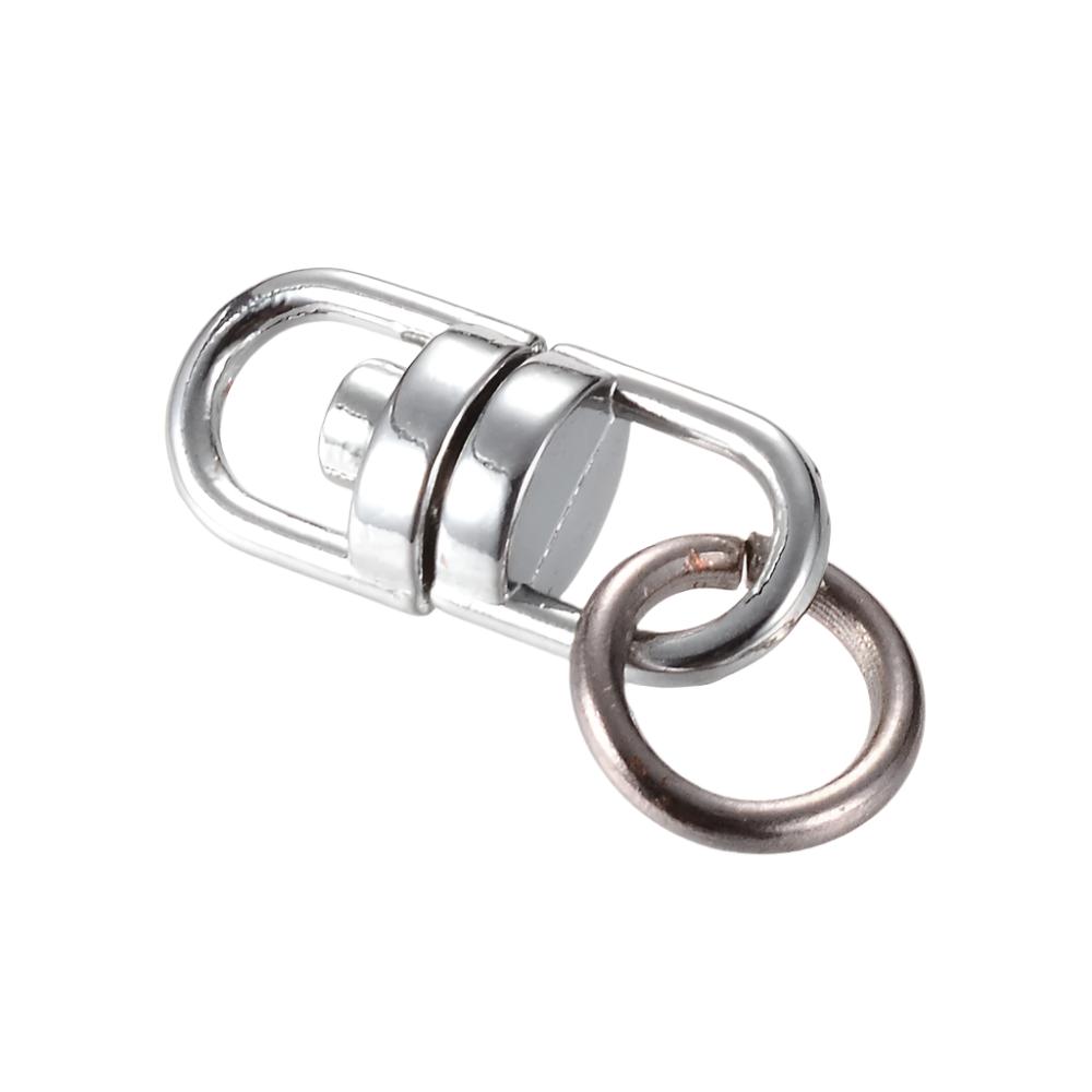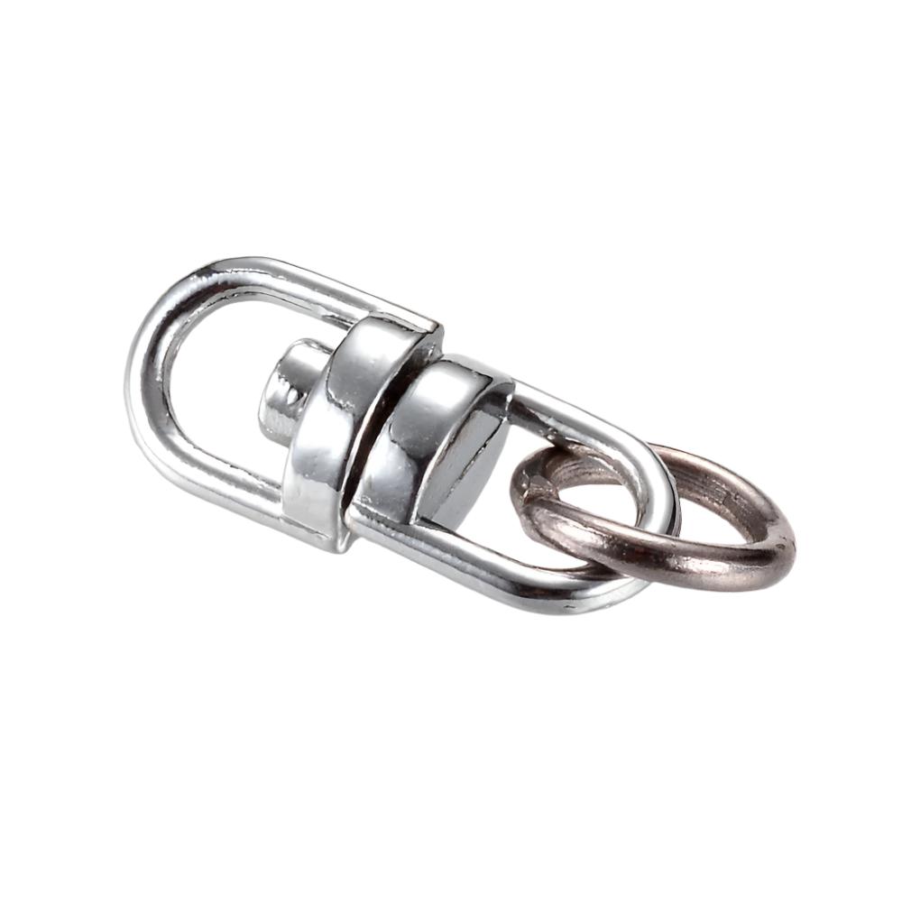 Description: Swivel connector for jewelry making, lanyards, key chains and more. Zinc alloy swivel link with iron jump ring. Rotates 360 degrees. Measures 16mm x 7mm x 5mm, Hole: 3.5mm x 4mm; Ring: 8mm x1mm, hole: 6mm