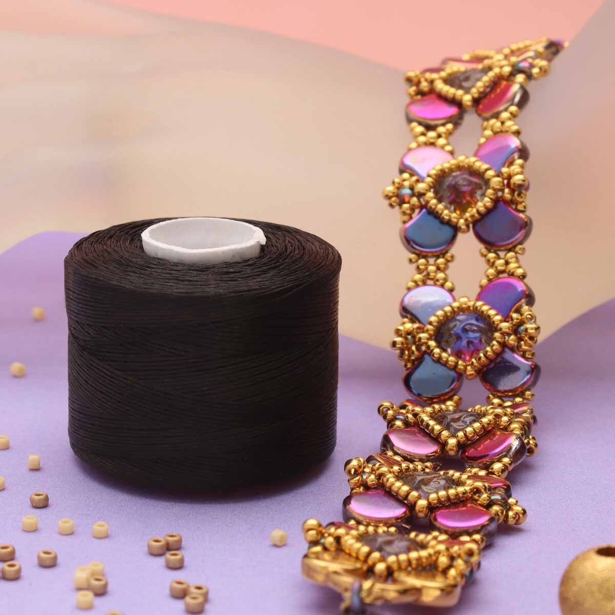 This slightly heavier nylon thread provides added strength for structural beadwork or designs using slightly larger beads. It is durable and strong while still accommodating multiple passes through beads.