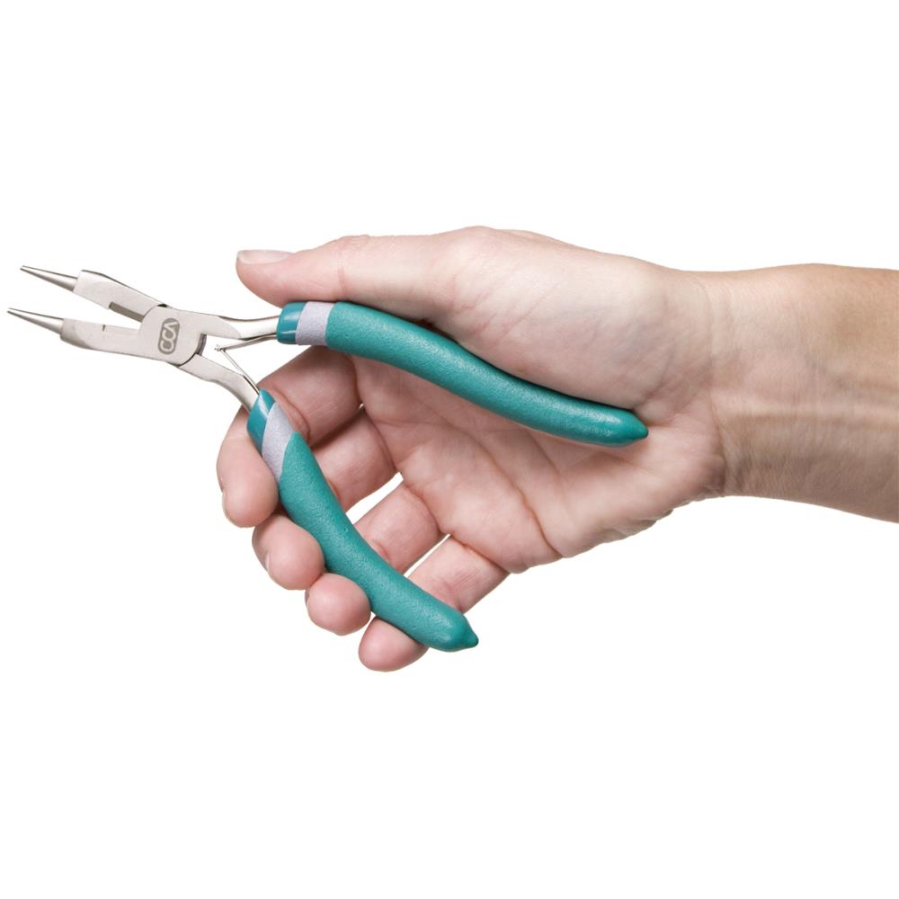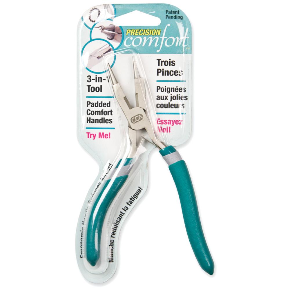 This Precision Comfort 3-in-1 Tool combines the functions of a wire cutter, round nose pliers, and flat nose pliers into one professional-quality design—perfect for beading, wirework, and jewellery making. Crafted from drop-forged, high-carbon steel with a durable silver-sand finish, it delivers both strength and precision. The padded, rubber-coated handles are ergonomically shaped and developed by designers and crafters for lasting comfort, reducing hand stress even during repetitive work. Lightweight and balanced to fit comfortably in either hand, the tool’s soft yet durable grip absorbs pressure to minimize fatigue and prevent pain—making it the ideal all-in-one plier for artisans who value quality and comfort.