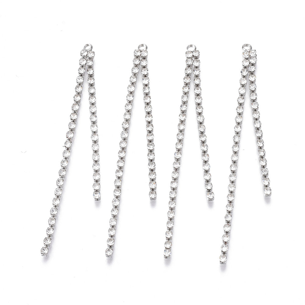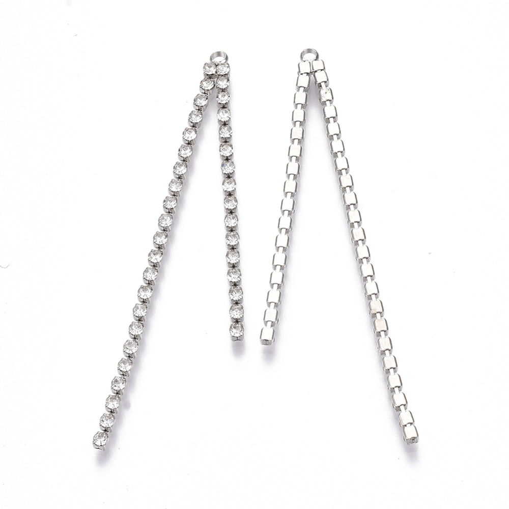 Description: Brass rhinestone cup chain two strand tassel. Size: about 70mm long, 2.5mm wide, 2mm thick, hole: 1.6mm.